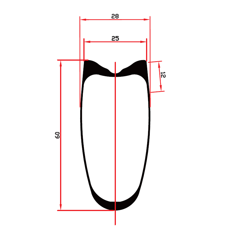 Tubular Carbon rim. Its rigidity and lightness for the rather hilly profiles. The behavior is very nervous. For competitors or cyclists looking for high performance. The JPRACING1 DB60t carbon rim has a large width of 25mm and 28mm in the central part: these are the modern widths. This reduces aerodynamic drag and therefore increases its speed. The wheels are also less sensitive to side wind and the steering more precise, the cyclist feels more confident. Compatible rim for tubular (23 or 25mm wide): the tubular of this size bring efficiency, comfort and grip.