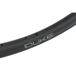 Comfort and grip thanks to a larger volume of air. It offers unrivaled lateral stiffness / weight ratio in its class and provides unusual sensations. Designed, developed and tested in France, The DUKE Crazy Jack in carbon has an ASYMMETRICAL profile (offset of 3 mm) which allows to increase the lateral stiffness of the wheel without gaining weight. The internal width between the hooks / sides is 28.5 mm. This gives more volume to the tires and improves efficiency, comfort and grip in turns.A wide rim also means that you can use finer, lighter tires while maintaining the comfort, softness and grip provided by a larger volume of air. Hookless design: the robustness of the rim is superior to that of a carbon rim with hooks. This technology has been used successfully on our rims since 2011. The height of the rim edge for 2015 is reduced by 1mm to further limit any risk of contact with the ground. Lateral stiffness improved by 40% compared to the previous version. Impact-resistant even on the most brittle ground: improved impact energy absorption of more than 50% compared to the previous model. Anti-burp system: the heel of the tire is held in position whatever its pressure, no risk of "unseating". Tubeless or inner tube.
