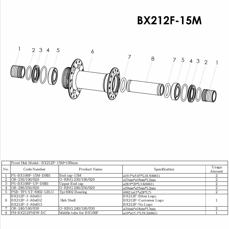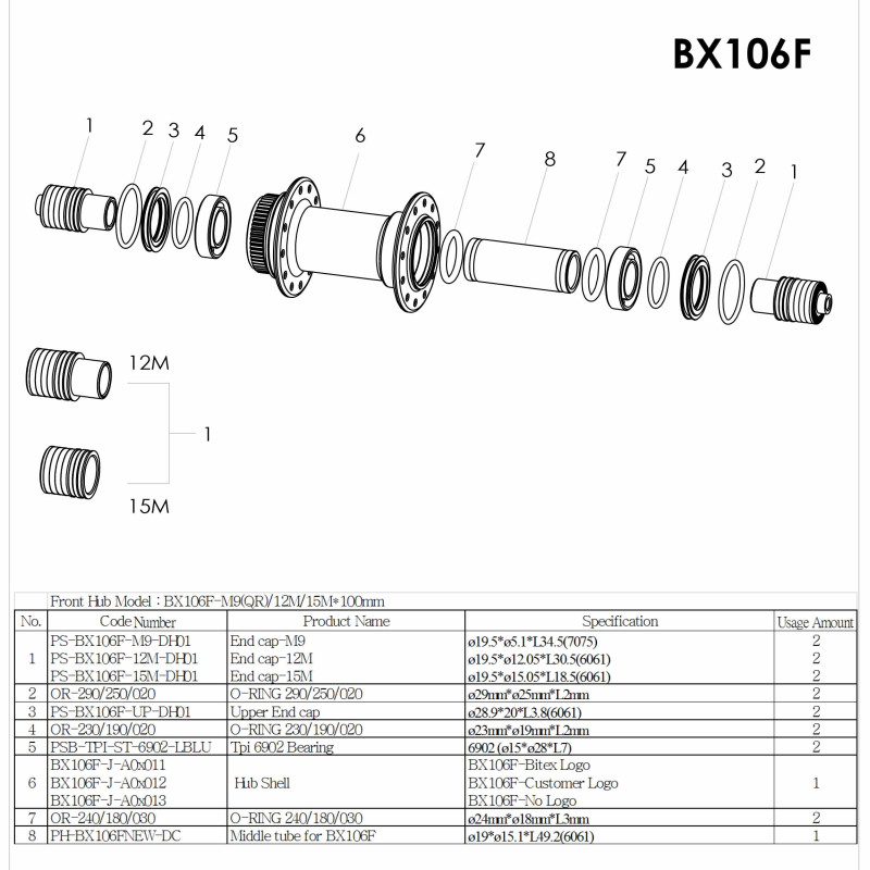 bitex centre lock hub BX106F no Boost and BX212F Boost