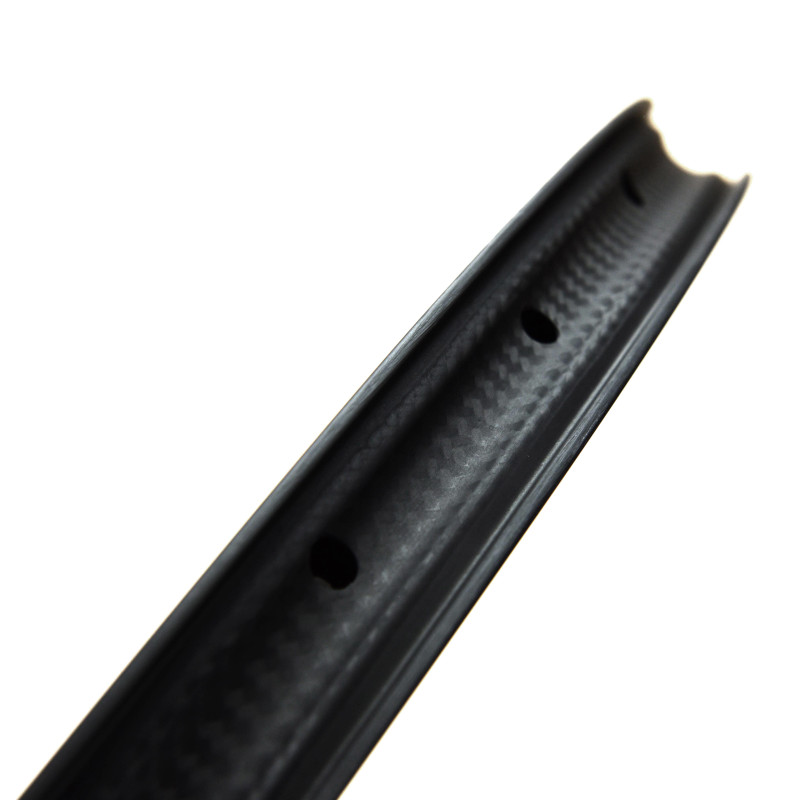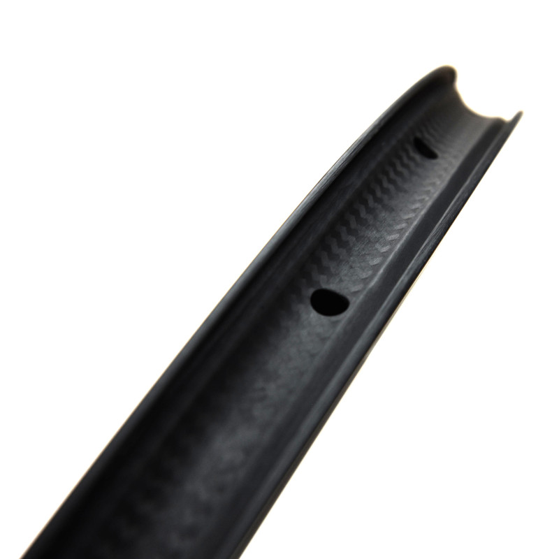 The BARON XR28 is a carbon rim for clincher and tubeless tires, for disc brakes, designed for both leisure and competition XC uses. It features a modern geometry with a low, asymmetrical 2mm profile that opens up the spoke brace angle, increasing lateral stiffness and wheel stability without adding weight. The spoke tensions between the two sides are more balanced, guaranteeing greater wheel durability. Weight: 360g. Hookless sidewalls reinforce the rim and reduce its weight. The finishing is matte UD carbon, a unidirectional carbon with no visible pattern. Only available in 28-hole. The 28mm internal width gives more air volume to the tires, improving comfort and grip without sacrificing performance. Recommended tire widths range from 48mm 1.90" to 66mm 2.60", tubeless or tubetype. Tubeless-compatible rim (UST system, Tubeless Ready). Requires rim tape and tubeless valve. Use of tubes is still possible. (tire+inner tube). BARON is a brand of JP RACING BIKE, which owns all their manufacturing tools.