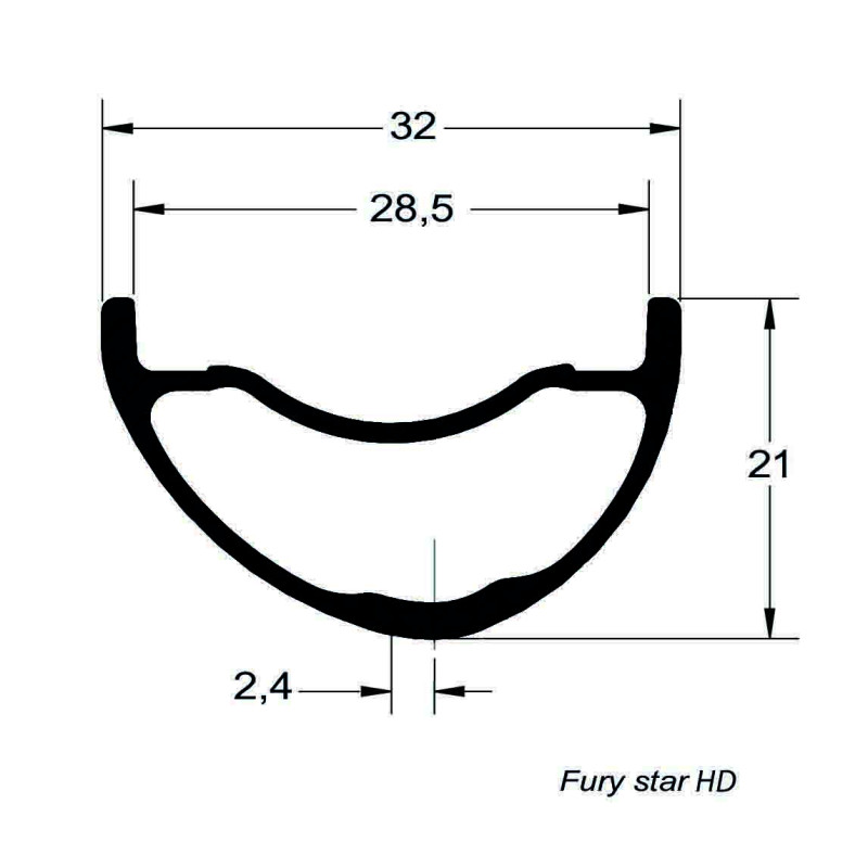 The Fury Star HD is an aluminum rim designed for intensive use in Enduro and DH. Its internal width is 28.5mm. The rim is also compatible with E-bike. These rims are used in the Enduro World Series and in the DH World Cup by the Team Commençal - Les Orres, the Team Scott SR-Suntour and by many other riders.