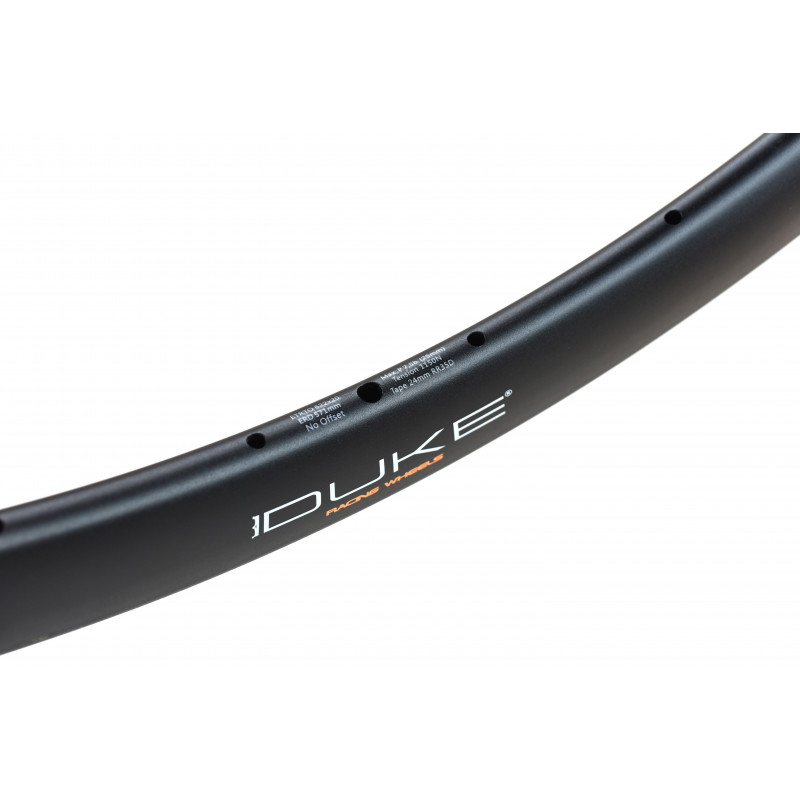 The DUKE Road runner 35 disc rim is designed, tested in France, DUKE is the exclusive owner of the manufacturing tools. The DUKE Road Rim Runner 35 disc Has a profile height of 35mm. Symmetrical profile. Inner width 20mm. This gives more volume to the tires and improves efficiency, comfort and cornering grip. A wide rim also means that you can use finer, lighter tires while maintaining the comfort, softness and grip provided by a larger volume of air.