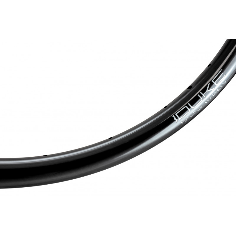 The DUKE World Runner Carbon 27 rim has been lightened by 45g and widened by 2.5mm compared to the previous version, it retains a profile height of 27.5mm. Asymmetrical offset profile 2mm. Width between 22.5mm large brackets: This gives more volume to the tires and thus improves efficiency, Comfort and grip in turns. A wide rim also means being able to use the finer and lighter tires while maintaining comfort, The softness and grip provided by a larger volume of air.