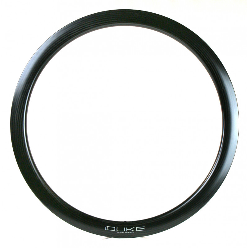 Carbon DUKE Rim 3k, twill 2x2 developed and tested in Vendée (France). The DUKE Baccara 45T carbon Disc have a asymmetric profile: With the increase in the number of speeds, The flange on the "cassette" side of the hub is increasingly "pushed" towards the inside of the wheel. The "umbrella" of the rays thus opens more and this results in the reduction of the lateral stiffness of the wheel: This one is blurred in the raises, takes of the veil easily ... To reduce this phenomenon we have designed an asymmetric rim which will give a much larger "umbrella" than the symmetrical rims (2.3 mm offset) More rigidity and more durability. Large width of 26mm: these are the modern widths. This reduces the aerodynamic drag and therefore increases its speed. The wheels are also less sensitive to lateral wind and the direction is more accurate The cyclist feels more confident. For tubular from 23 to 28mm wide (up to 33mm in cyclocross), The tubular of this size bring efficiency, comfort and grip.