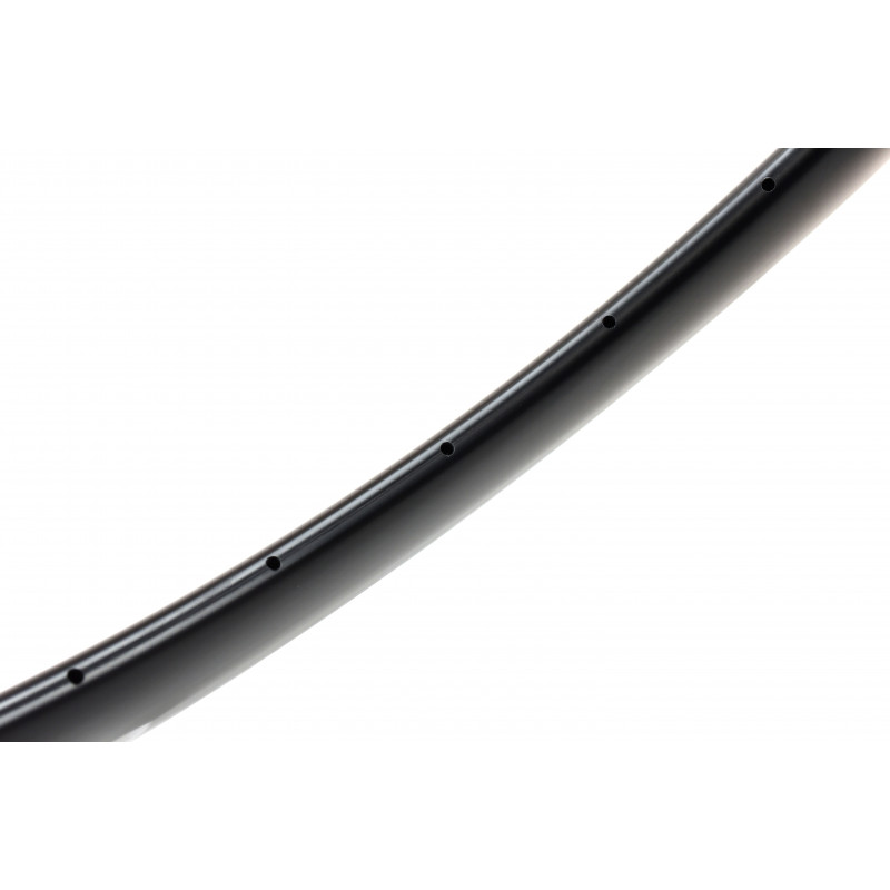 The outer width is increased to 27.6mm, has a new UV shape and reduces aerodynamic drag. The rim holes are off-centered (2mm offset), which allows to close more the spokes umbrella. This makes the rim more stable and increases the lateral stiffness of the wheel. The spoke tensions between the two layers are more balanced, which guarantees a better durability of the wheel. So more stiffness and more durability.