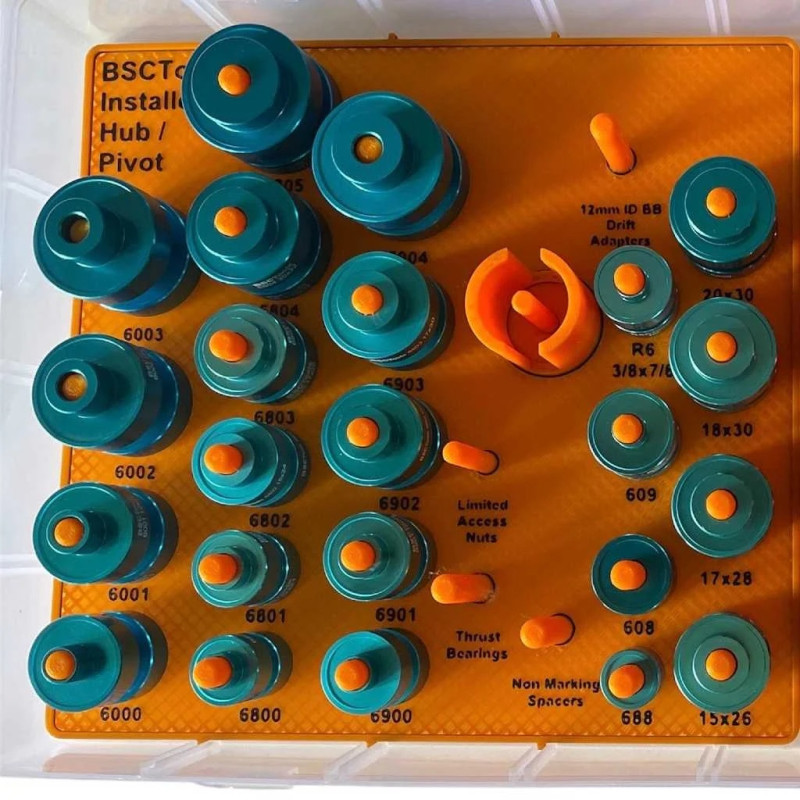 Full set of installers and extractors for mountain bike pivot and front and rear hub bearings.