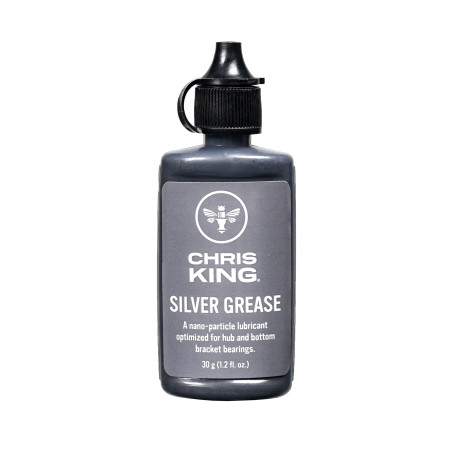 Chris King Silver Grease is a nano-particle lubricant optimized for hub and bottom bracket bearings. A nano lubricant is one that is lubricious at its molecular level. With Silver Grease, chris king struck a balance between providing the lowest possible drag and still providing excellent weather resistance. It’s compatible with CHRIS KING steel and ceramic bearings.