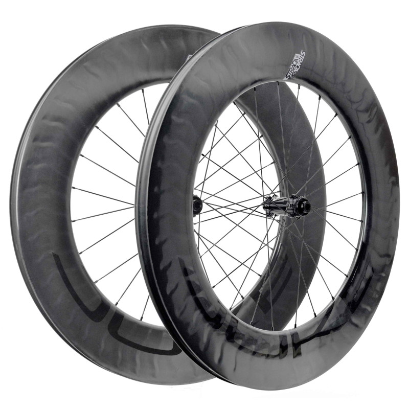 An extremely fast aero wheelset, ideal for time trials and long-distance triathlon, particularly in a Strada Æra 78 front / Strada Æra 100 rear combo.