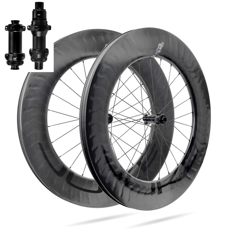 An extremely fast aero wheelset, ideal for time trials and long-distance triathlon, particularly in a Strada Æra 78 front / Strada Æra 100 rear combo.