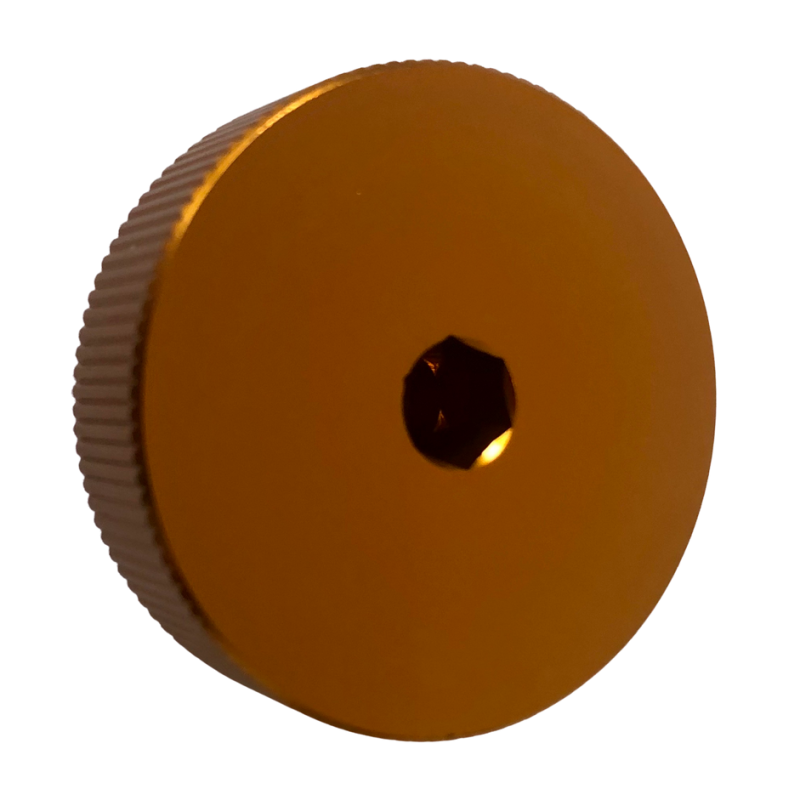 CNC machined aluminium, anodised for wear and corrosion protection, 10mm wide straight knurled grip, 6mm allen key fitting