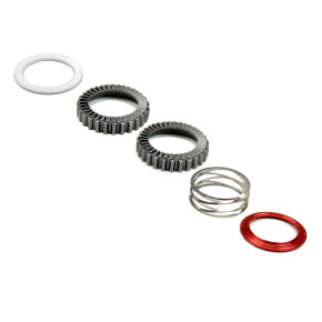 Complete with ratchets, spring, and 2 spacers (red aluminum and white polyamide)