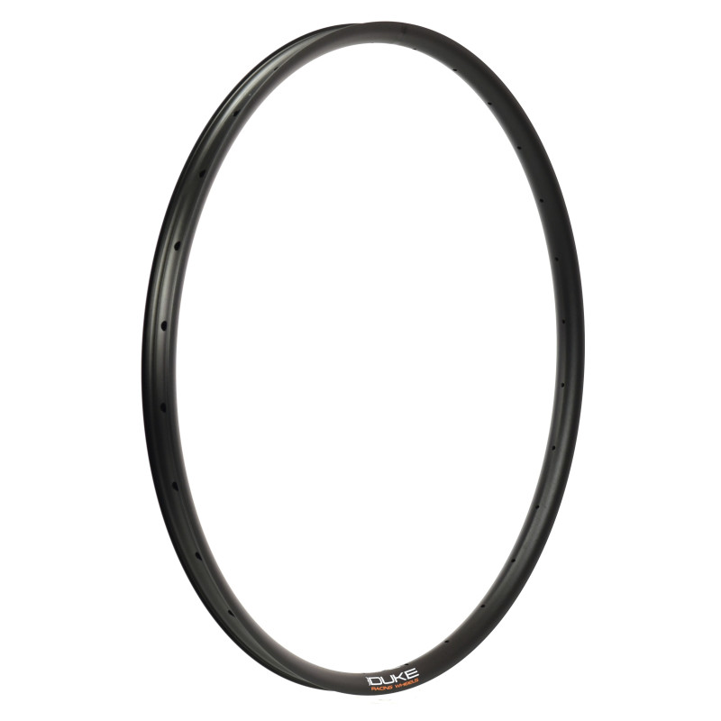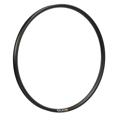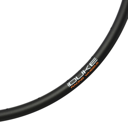 Rim made for Trail and All Mountain. On its wheels DUKE is the exclusive owner of the production tools. It offers a very good lateral rigidity and a very high internal width to improve the behavior of the tire. It is recommended on all types of terrain. The DUKE Crazy Star 6Ters rim is wider at the front of 3mm and 1.5mm higher. It have an asymmetrical profil (2.5mm offset) Which makes it possible to increase the lateral stiffness of the wheel without gaining weight. The holes in the rim are off-centered, this makes it possible to close more the umbrella formed by the Spokes. Thus the spokes ensure a better maintenance of the rim and the lateral stiffness of the wheel is increased. The risk of sailing is also decreased. Moreover, this device makes it possible to further balance the tensions of the rays between the two layers and thus guarantees a better durability of the wheel The internal size between the large brackets is 29.5 mm.