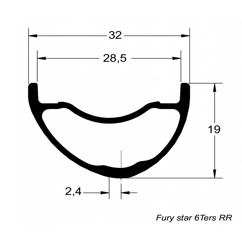 Rim for All Mountain and Enduro use. It offers excellent lateral stiffness and a very large internal width to improve the behavior of the tire. The Fury Star 6ters is the Enduro DUKE On its wheels DUKE is the exclusive owner of the production tools.. wheel. Made of a strong, lightweight alloy, this rim is perfect for your races and rugged terrain. Its wide profile facilitates the maintenance of wide tires, perfect for engaging in supports and jumps! It offers excellent lateral stiffness and a very large internal width to improve the behavior of the tire. The DUKE designed, developed, tested in FRANCE. The DUKE rim fury star has an ASYMMETRICAL profile which allows to increase the lateral stiffness of the wheel without gaining weight. this device makes it possible to further balance the tensions of the rays between the two layers and thus guarantees a better durability of the wheel.The rim's holes are off-center. this makes it possible to close more the umbrella formed by the Spokes. Thus the spokes ensure a better maintenance of the rim and the lateral stiffness of the wheel is increased. The risk of sailing is also decreased. Furthermore,this device makes it possible to further balance the tensions of the rays between the two layers and thus guarantees a better durability of the wheel. The internal width between the hooks. This give more volume to the tire and increase efficiency, comfort and grip in turns. A wide rim also means being able to use thinner and lighter tires while maintaining comfort, The softness and grip provided by a larger volume of air. Larger tires would offer even more volume of air as they are heavy and not very dynamic. The best combination tire / rim is achieved when a tire is finished mounted on a wide rim. The tire becomes larger. This combination also reduces the rolling phenomena of the tire under the rim in the changes of bearings. With a narrow rim and a wide tire, the rim floats from one side to the other of the rim without holding. Using a wide rim and a thin tire, to minimize the floating phenomenon and on the behavior and control of the bike. Inner tube or tubeless assembly.