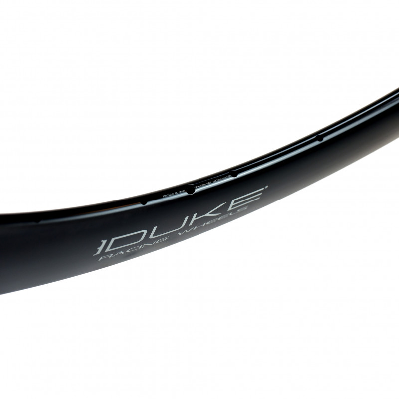 Les largeurs de pneus conseillées sont 25mm et 28mm, tubeless ou tubetype. DUKE est propriétaire de ses outils de fabrication.
