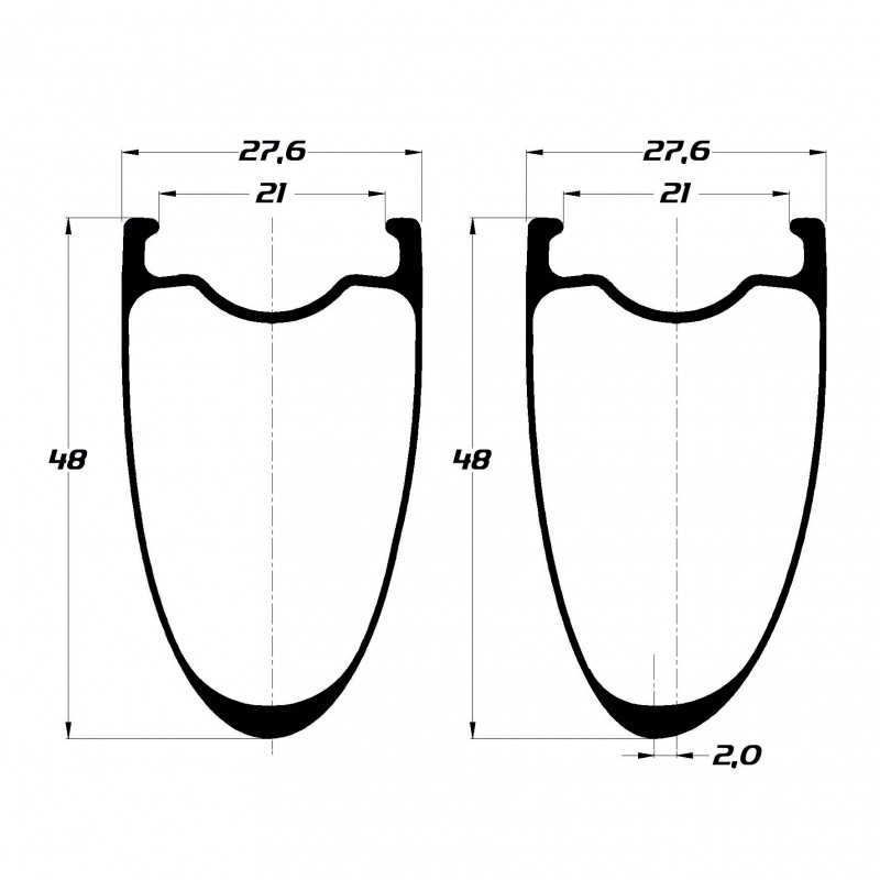 La largeur extérieure est plus importante avec 27,6 mm, possède une nouvelle forme UV Ceci permet de réduire la traînée aérodynamique. Les perçages de la jante sont décentrés (2mm offset), ce qui permet de fermer davantage le parapluie des rayons. Ainsi la jante est plus stable et la rigidité latérale de la roue est augmentée. Les tensions des rayons entre les deux nappes sont plus équilibrées, ce qui garantit une meilleure durabilité de la roue. Donc plus de rigidité et plus de durabilité.