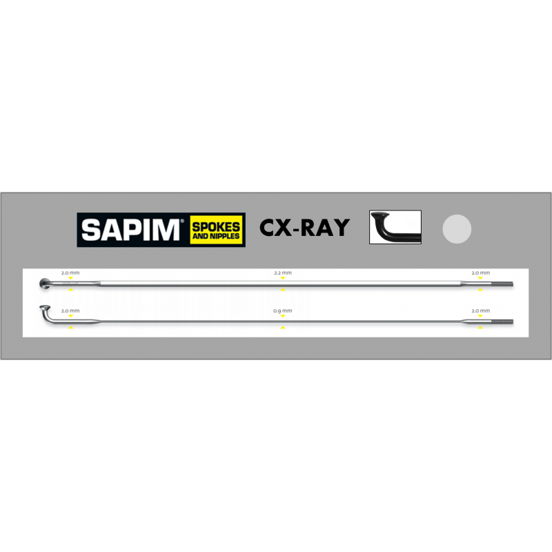 Le modèle CX-Ray est le porte-drapeau de Sapim : en dépit de sa faible masse, son élasticité est près de 50 % meilleure qu'un rayon classique avec une durée de vie 3 fois supérieure. Ce modèle convient à toutes les pratiques du cyclisme puisque, de la recherche ultime de légèreté pour les ascensions avec votre vélo de route à la résistance absolue pour les pierriers en descente, le CX-Ray vous permet d'alléger vos roues tout en contribuant à rendre votre monture encore plus fiable.