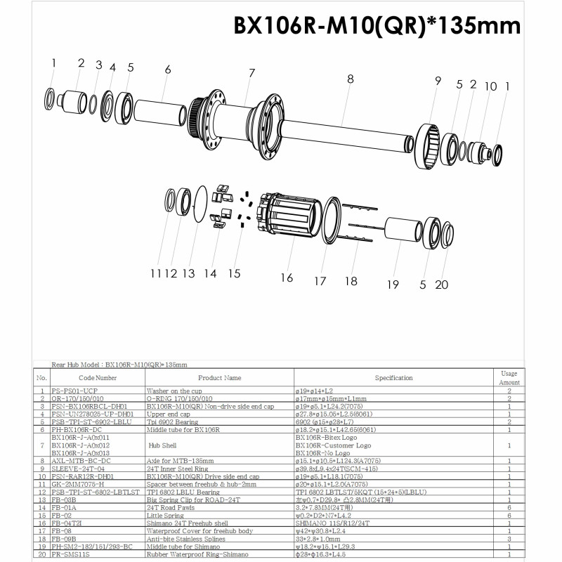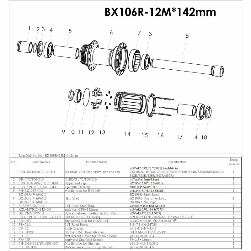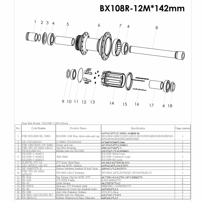 Moyeux Bitex BX106R et BX108R non Boost et BX212R Boost center lock