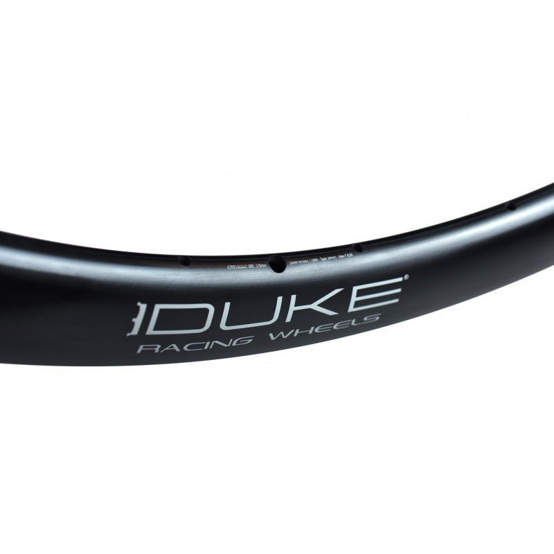 Les largeurs de pneus conseillées sont 25mm et 28mm, tubeless ou tubetype. DUKE est propriétaire de ses outils de fabrication.