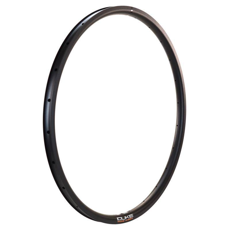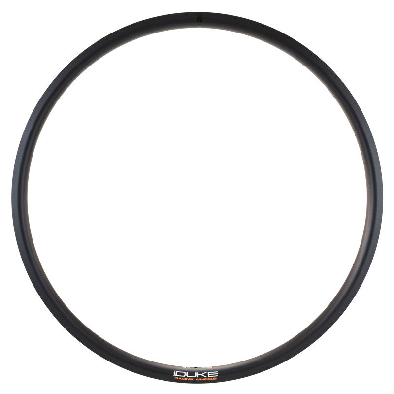La jante DUKE world runner X 25 est dessinée, testée en France, DUKE est le propriétaire exclusif des outils de fabrication. La jante DUKE world Runner possède une hauteur profil de 25 mm. Profil ASYMÉTRIQUE avant et arrière : avec l'apparition du disque à l'avant et l’augmentation du nombre de vitesses, côté cassette les flasques du moyeu se voit de plus en plus « poussée » vers l’intérieur de la roue. Le parapluie des rayons s’ouvre ainsi davantage et ceci a pour conséquence la réduction de la rigidité latérale de la roue : celle-ci est floue dans les relances, prend du voile facilement… Pour réduire ce phénomène nous avons dessiné une jante asymétrique qui va donner un parapluie bien supérieur aux jantes symétriques (offset de 2 mm) et va permettre de rééquilibrer les tensions des deux nappes : plus de rigidité et plus de durabilité. Largeur entre crochets importante de 25 mm : Ceci donne davantage de volume aux pneus et améliore ainsi rendement, confort et adhérence dans les virages. Une jante large signifie également pouvoir utiliser des pneus plus fins et plus légers en conservant le confort, le moelleux et le grip procurés par un volume d’air plus important.