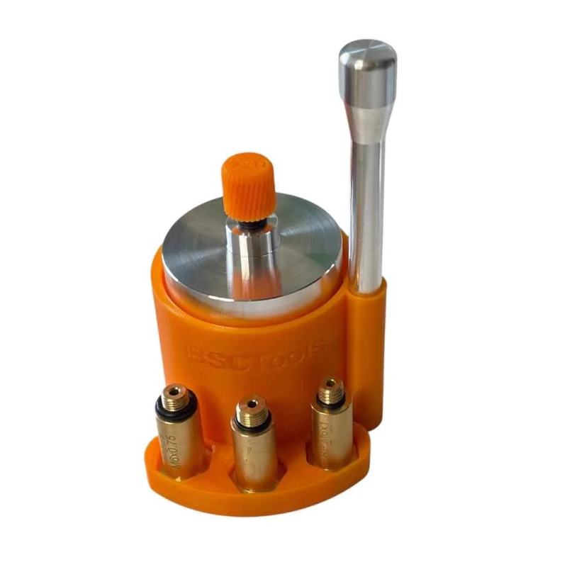 BSCTools bocal de purge en aluminium CNC avec piston et support imprimé en 3D.