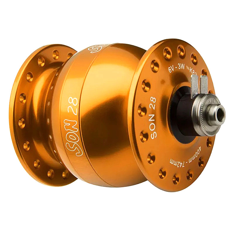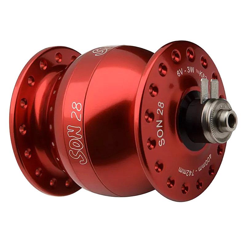 Le moyeu dynamo SON 28 est conçu pour fournir une puissance élevée à faible vitesse. C'est pourquoi le SON 28 délivre beaucoup d'électricité pour les lumières ou pour alimenter des batteries de charge, même quand le vélo roule lentement.