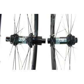 Paire de roues neuves d'exposition avec quelques légères traces de frottement sur les moyeux, disponible sous 24h