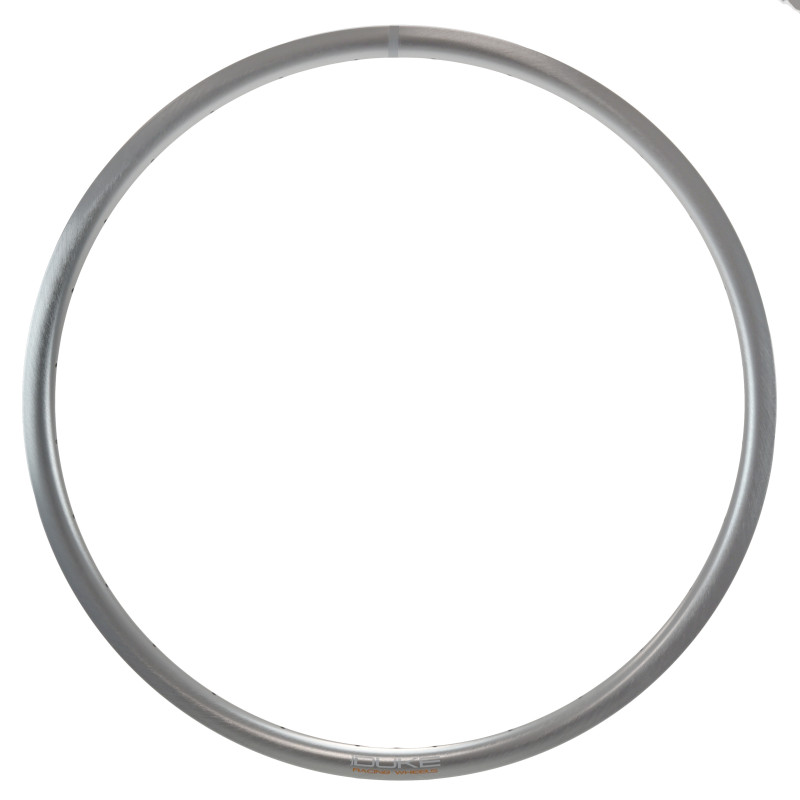 La jante DUKE world runner X 25 argent en aluminium brossé et anodisé. Dessinée, testée en France, DUKE est le propriétaire exclusif des outils de fabrication. La jante DUKE world Runner possède une hauteur profil de 25 mm. Profil ASYMÉTRIQUE avant et arrière : avec l'apparition du disque à l'avant et l’augmentation du nombre de vitesses, côté cassette les flasques du moyeu se voit de plus en plus « poussée » vers l’intérieur de la roue. Le parapluie des rayons s’ouvre ainsi davantage et ceci a pour conséquence la réduction de la rigidité latérale de la roue : celle-ci est floue dans les relances, prend du voile facilement… Pour réduire ce phénomène nous avons dessiné une jante asymétrique qui va donner un parapluie bien supérieur aux jantes symétriques (offset de 2 mm) et va permettre de rééquilibrer les tensions des deux nappes : plus de rigidité et plus de durabilité. Largeur entre crochets importante de 25 mm : Ceci donne davantage de volume aux pneus et améliore ainsi rendement, confort et adhérence dans les virages. Une jante large signifie également pouvoir utiliser des pneus plus fins et plus légers en conservant le confort, le moelleux et le grip procurés par un volume d’air plus important.
