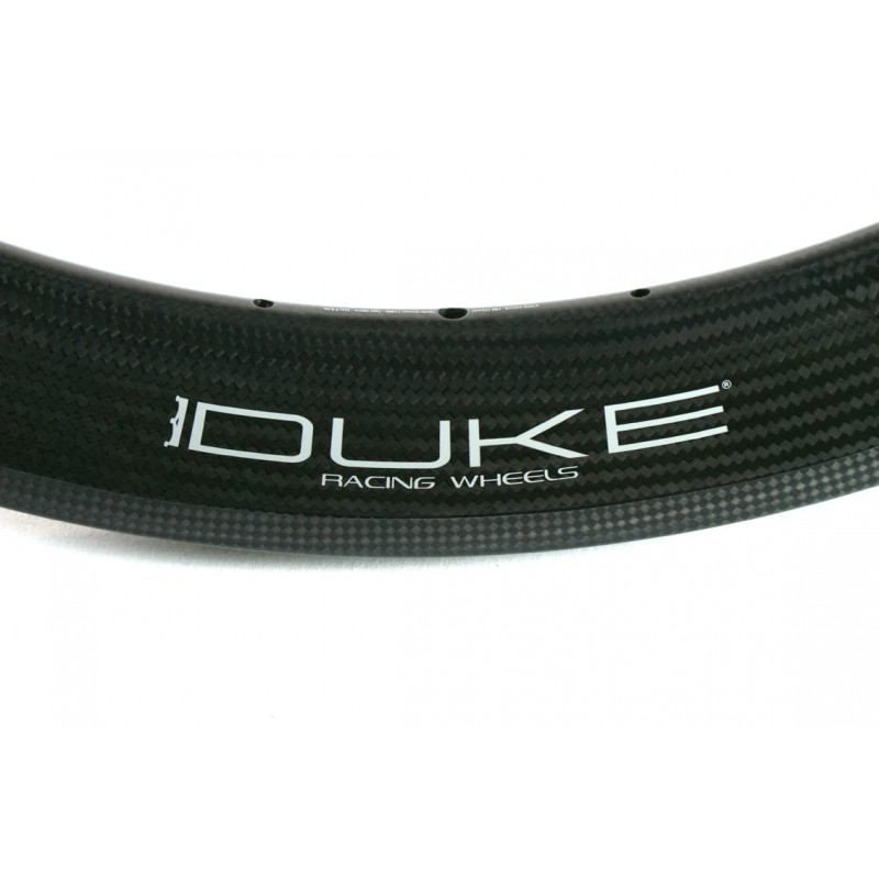 Jante DUKE Baccara 55C en carbone (3k) sergé 2×2, dessinée, développée et testée chez nous en Vendée. La jante DUKE Baccara 55C en carbone (3k) sergé 2×2 possède une largeur intérieure entre crochets/parois importante de 18mm. Ceci donne davantage de volume aux pneus et améliore ainsi rendement, confort et adhérence dans les virages. Une jante large signifie également pouvoir utiliser des pneus plus fins et plus légers en conservant le confort, le moelleux et le grip procurés par un volume d’air plus important.