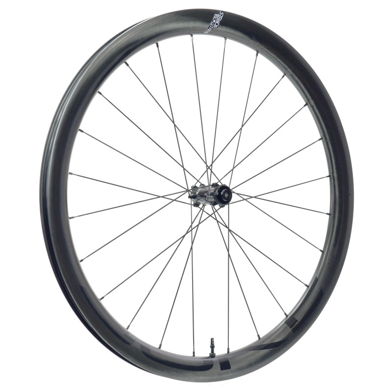 Dès 1090 g* de polyvalence pure. Strada 42 est notre roue carbone route Élite pour les parcours vallonnés, offrant un équilibre parfait entre vivacité, confort et début d’aérodynamisme.