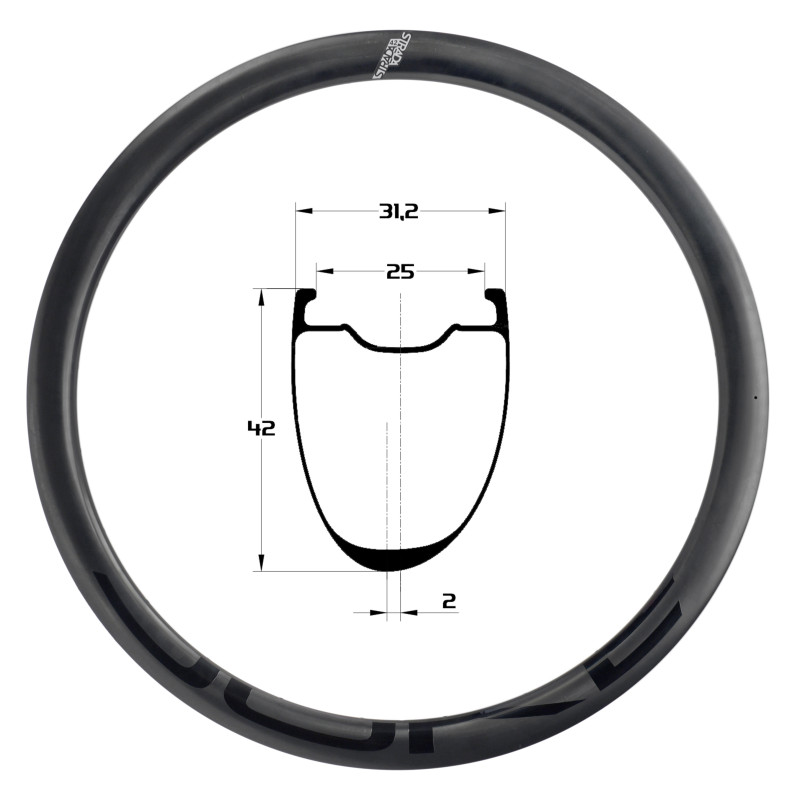 Avec 25 mm de largeur interne, Strada 42 offre un volume de pneu idéal — notamment avec un pneu de 30 mm — permettant de réduire la pression pour plus de grip et de confort, sans sacrifier le rendement.
