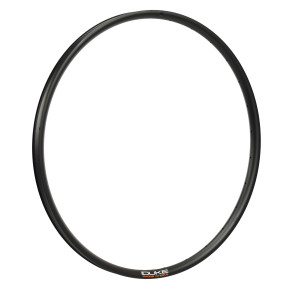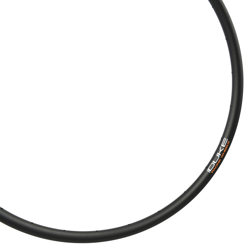 Jante destinée à un usage Trail et All Mountain. Sur ses jantes, DUKE est propriétaire exclusif des outils de fabrication. Elle offre une très bonne rigidité latérale et une largeur intérieure très importante pour améliorer le comportement du pneumatique. Elle est conseillée sur tous types de terrains. La jante DUKE Crazy Star 6Ters est plus large à l'avant de 3 mm et plus haute de 1.5 mm. Elle possède un profil ASYMÉTRIQUE (offset de 2.5 mm) qui permet d'augmenter la rigidité latérale de la roue sans prendre de poids. Les perçages de la jante sont décentrés, ceci permet de fermer davantage le parapluie que forment les rayons. Ainsi les rayons assurent un meilleur maintien de la jante et la rigidité latérale de la roue est augmentée. Le risque de prise de voile est également diminué. De plus, cet artifice permet d'équilibrer davantage les tensions des rayons entre les deux nappes et garantit ainsi une meilleure durabilité de la roue. La largeur intérieure entre crochets importante est de 29,5 mm. Ceci donne davantage de volume aux pneus et améliore ainsi rendement, confort et adhérence dans les virages. Une jante large signifie également pouvoir utiliser des pneus plus fins et plus légers en conservant le confort, le moelleux et le grip procurés par un volume d’air plus important. Des pneus plus larges offriraient encore davantage de volume d’air mais ils sont lourds et peu dynamiques. La meilleure combinaison pneu/jante est obtenue quand un pneu relativement fin est monté sur une jante large. Le pneu devient ainsi plus large. Cette combinaison diminue également les phénomènes de roulement du pneu sous la jante dans les changements d’appuis. Avec une jante étroite et un pneu large, la jante flotte d’un côté à l’autre de la jante sans tenue. En utilisant une jante large et un pneu fin, on minimise le phénomène de flottement et on améliore le comportement et le contrôle du vélo.